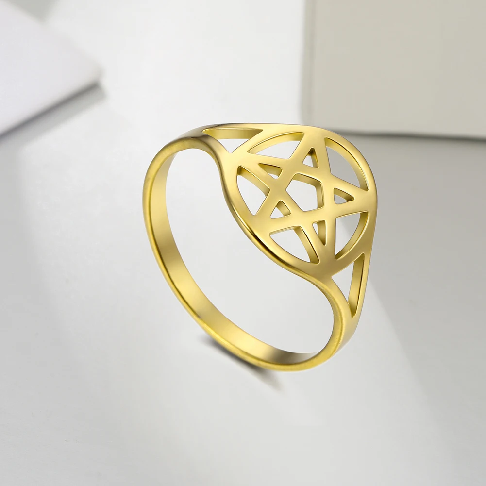 Teamer, Открытое кольцо со звездой, модное винтажное кольцо из нержавеющей стали, кольцо с пентаграммой и звездой, ювелирные изделия для женщин и мужчин