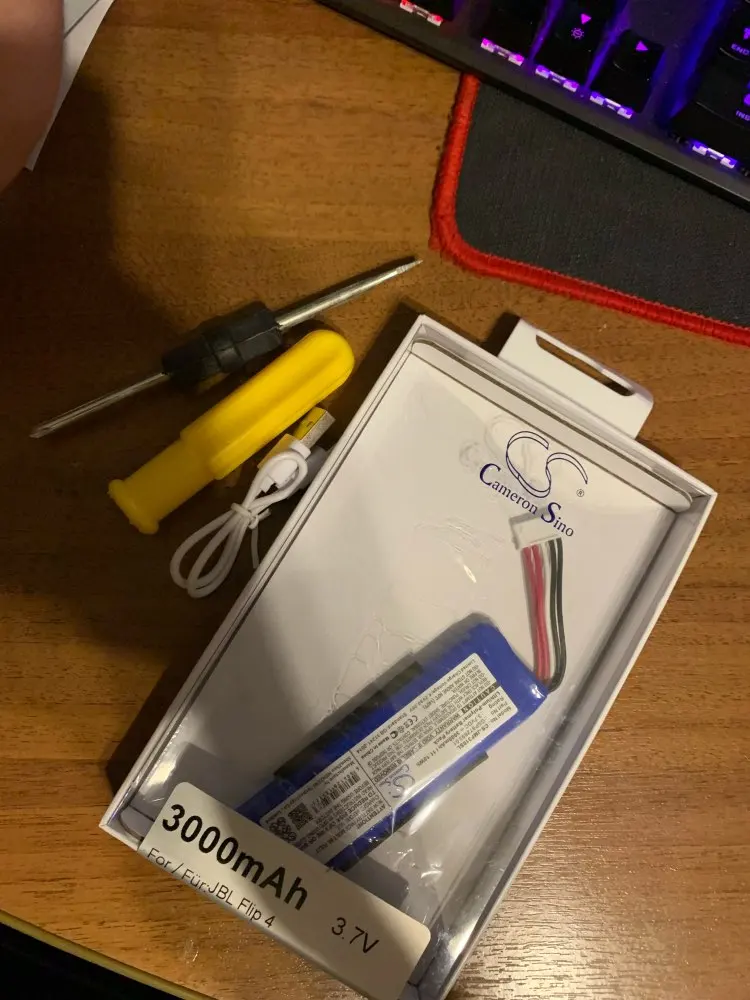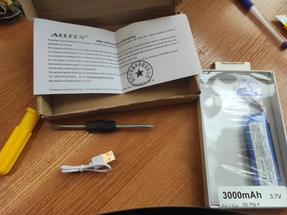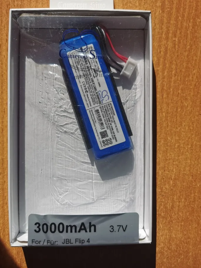 Качественный аккумулятор, ехал только долго очень — 1,5 месяца. С установкой проблем не возникло, JBL Flip4 работает с ним часов 10 от одного заряда, если не больше. Разочаруетесь в качестве материалов, которое использует JBL в своих продуктах — пластик на уровне игрушек из Китая 80х годов, винты и крепления рассчитанны на 1-2 разборки/сборки — металл пластилиновый. Мда... На приложенном фото видно качества «родного зелёного аккума» после года нерегулярного и бережного использования колонки — вздулся в два раза от стандартного состояния. Из-за просадки родного аккумулятора начали «ПЕРДЕТЬ» динамики, так что не торопитесь нести колонку в сервисы, где вас обдерут, как липку и вы скорее решите купить новую колонку. Замена аккумулятора решает проблему пердежа на ура! Экономия от 1500₽ до бесконечности...))) Рекомендую товар и продавца!