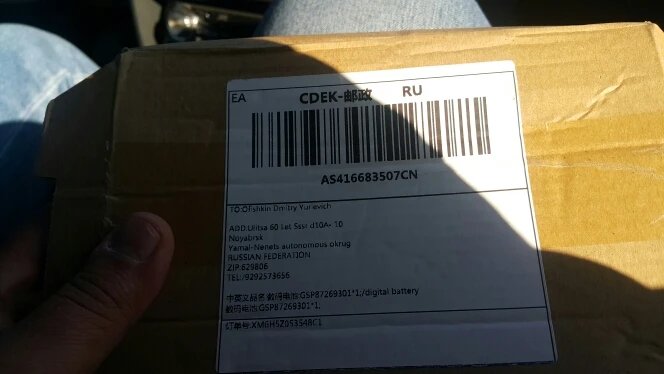 Доставка до НСК неожиданно быстро, всего две недели, доставил СДЭК до квартиры. Но, если бы СДЭК, я мог еë вообще не получить, так как адрес доставки на упаковки был указан Красноярск, а трэк номер мой. Вобщем не понятная ситуация. Батарея рабочая, сразу установил, была заряжена на три деления, весь вечер пытаюсь разрядить, но пока играет.