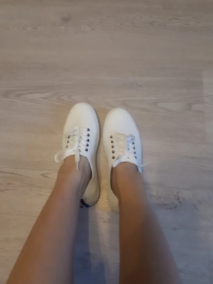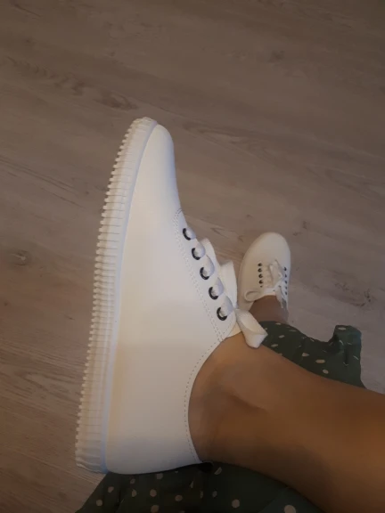 ждала херову тучу времени , пришли мятые , шнурки разной длинной , подошва местами резина не белая а чёрные вкрапления , как будто какие то нитки в резине застряли , размер маленький , на стопу 24,5 см заказала 8 , на подошве написано 5 . хрен поймёшь короче , но маленькие , пальцы выпирают не красиво . ВООБЩЕМ ДЕРЬМО СОБАЧЬЕ