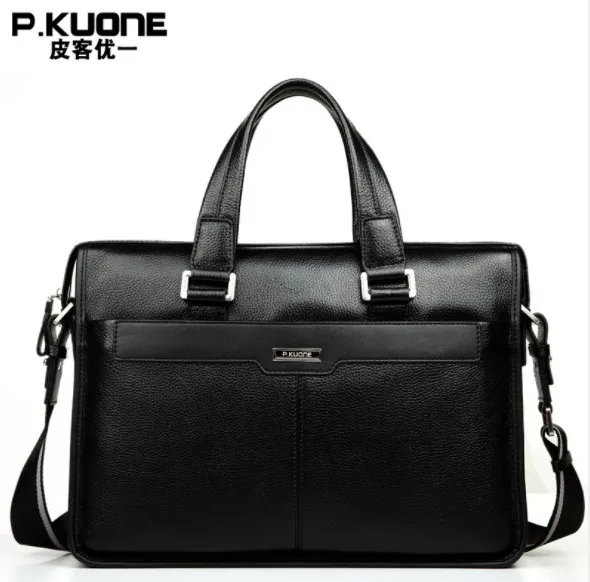 P.KUONE мужской портфель из натуральной кожи, деловая сумка, Повседневная сумка для путешествий, сумка для ноутбука 15 дюймов