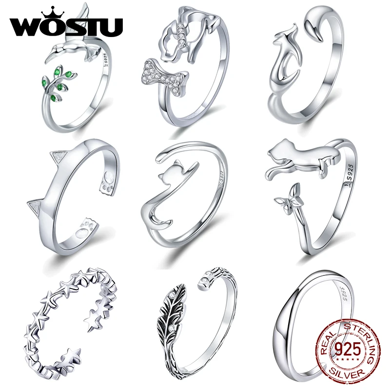 WOSTU, 100% Настоящее серебро 925 пробы, милые Регулируемые кольца с кошачьими пальцами для женщин, кольца для браслетов, ювелирные изделия для вечеринок, подарок DXR341