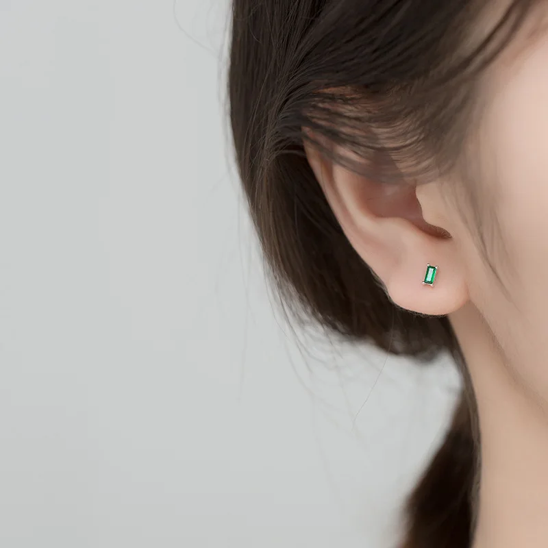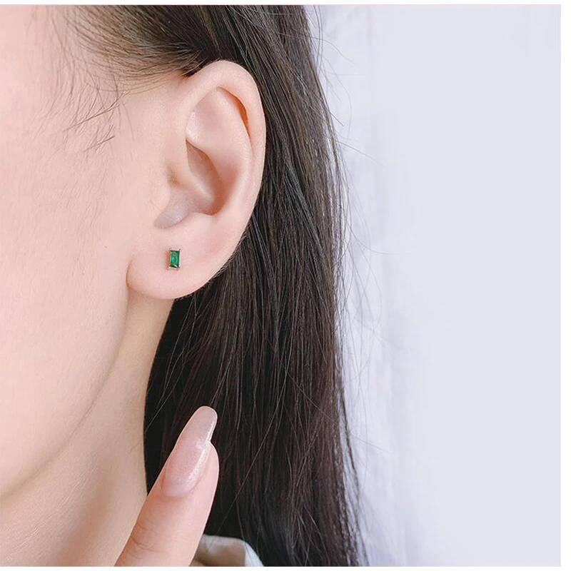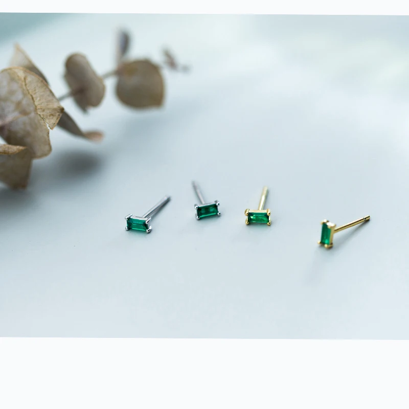Женские серьги-гвоздики из серебра 925 пробы с зеленым Цирконом