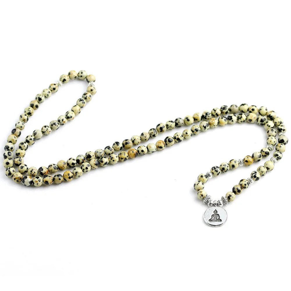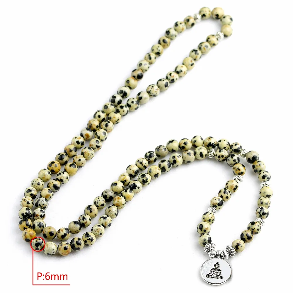 Йога запястье 108 Mala бусы браслет чакра браслеты для унисекс Лотос талисманы Будда натуральный Далматин камень для женщин и мужчин ювелирные изделия