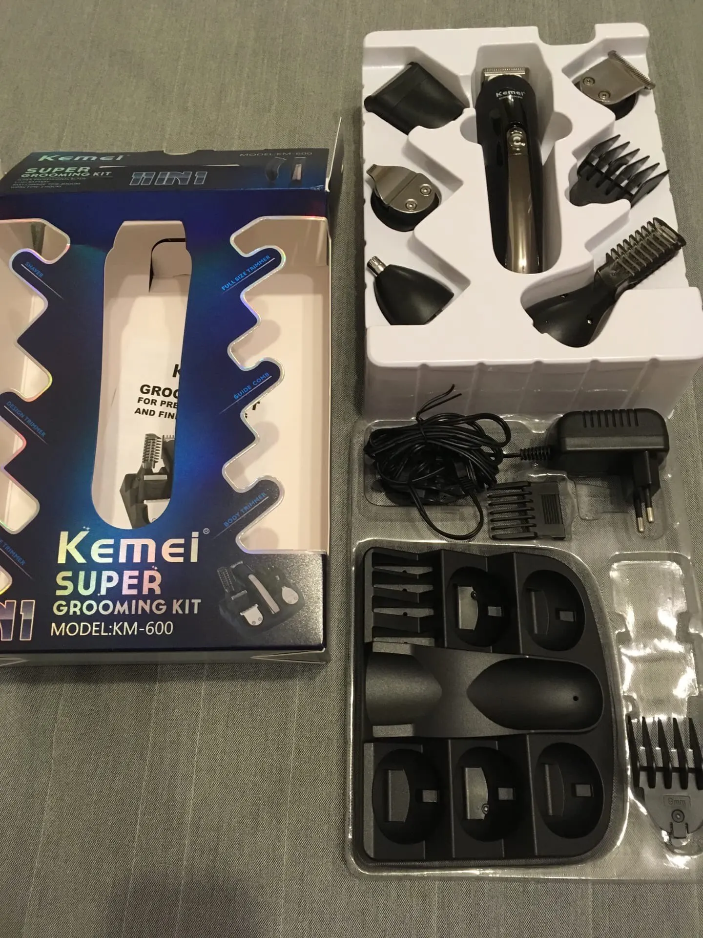 Очень быстрая доставка, заказывали из России, дошло за 5 дней. Комплектация полная, хорошая упаковка. Ножи острые, стрижет и бреет замечательно. Один минус- очень тугой переключатель - включения и выключения бритвы. Надеемся, что не сломается.
