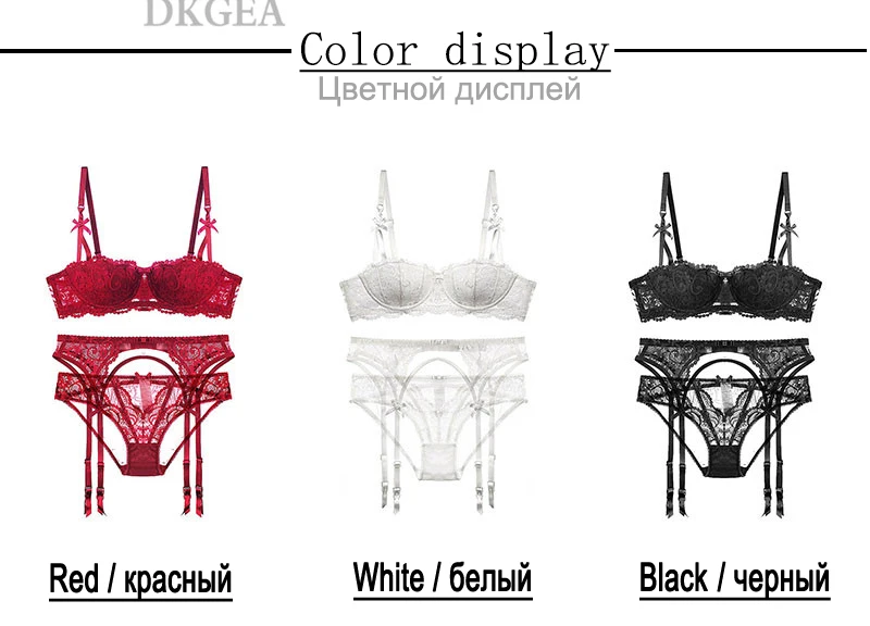 Белые бюстгальтеры пуш ап Комплект женского белья Хлопковый бюстгальтер с вышивкой Кружевной бюстгальтер 3 шт. Бюстгальтер + трусики + подвязки Сексуальный комплект нижнего белья