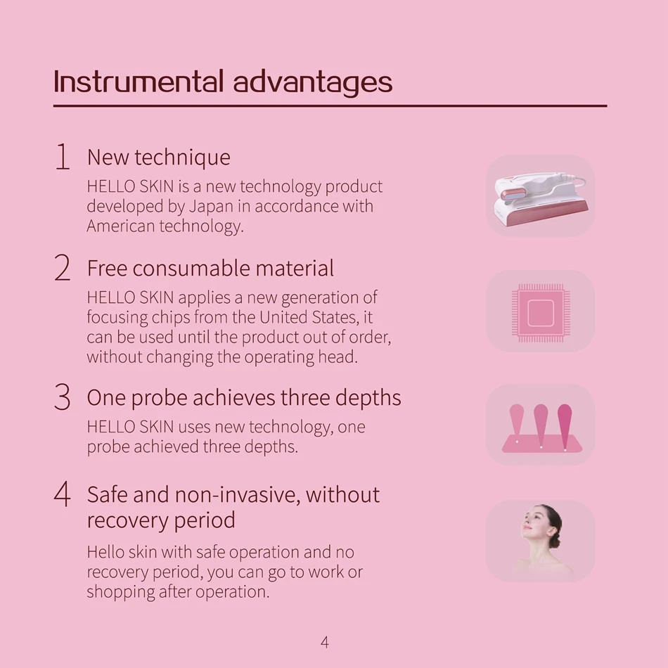 Фон с технологиейHIFU используется в медицинских науках более 50 лет, что является безопасным и эффективным, используется для устранения мышечных тканей организма в медицине. В раннее время он используется для системы лечения опухолей, затем он обнаружил, что его отличная эффективность в улучшении кожи и устранении жира, а затем он вводится в медицинское косметическое поле.Домашнее использование HIFU фокусирует ультразвук на одиночных энергетических пятнах, используя высокоинтенсивный сфокусированный ультразвук (HIFU) для генерирования высокой энергии, работающей на поверхностной мускуло-апоневротической системе (AMAS), так что слой SMAS сжимается для стимуляции и регенерации молекул коллагена в глубокой коже. Между тем, энергия капризов над кожей, таким образом, нет необходимости беспокоиться о повреждении кожи; Она также может поднимать кожу, компактный контур лица и быстро разглаживать морщины.Инструментальные преимуществаКогда HIFU работает на глубокой коже, сокращение энергии происходит немедленно, и температура клеток во внутренней коже может быстро вырасти до 60-70 ℃, что является лучшей температурой для содействия быстрой реорганизации и регенерации молекул коллагена;