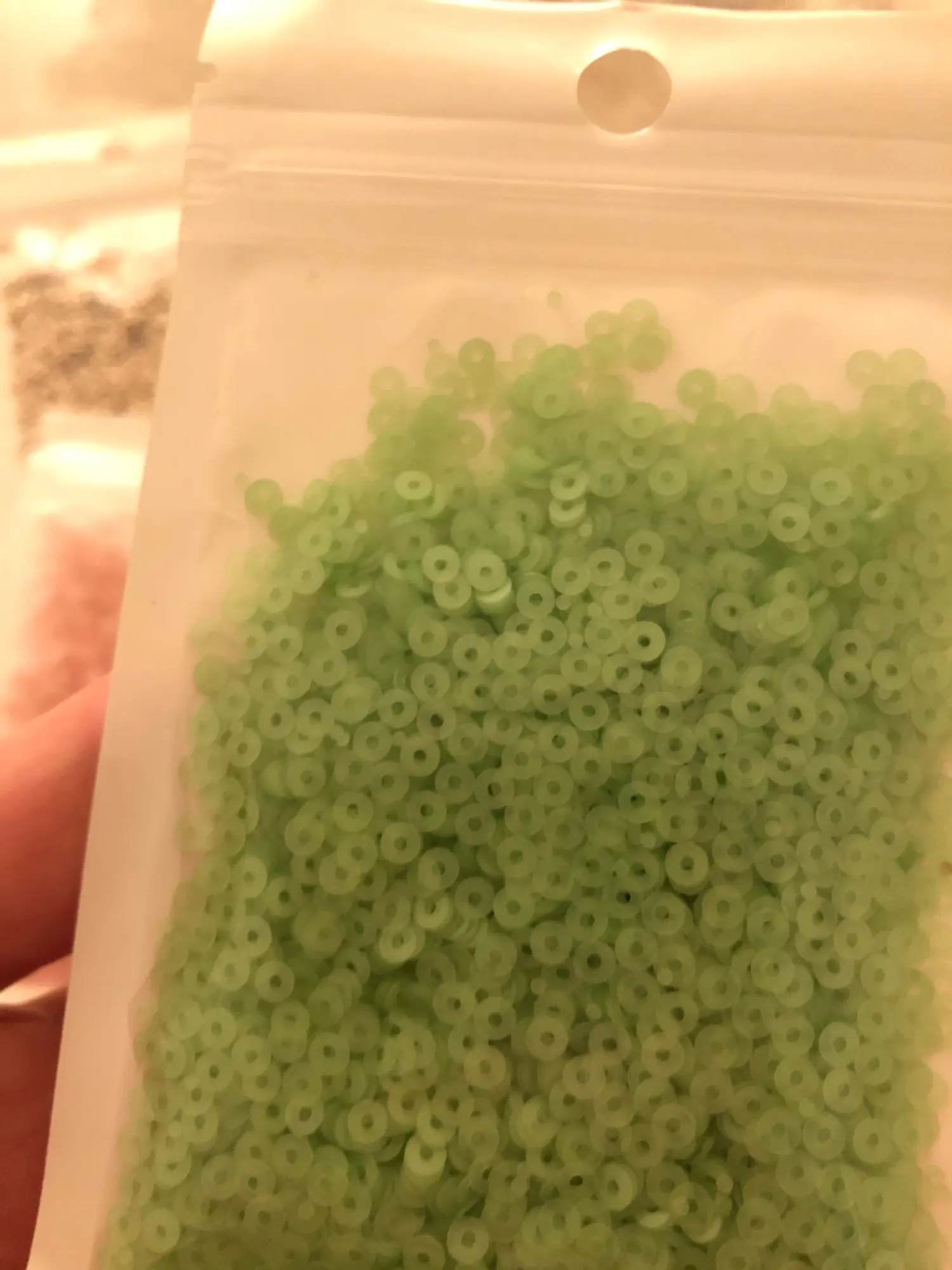 Заказывала 2 вида тускло-болотно-зелёных пайеток и 1 прозрачные ярко- зелёные. Брака мало, отверстия в основном расположены по центру. Пришила на пробу на ткань несколько пайеток каждого вида, покрытие не облезло даже когда потерла жёсткой губкой. Доставка заняла 1 месяц в Россию.