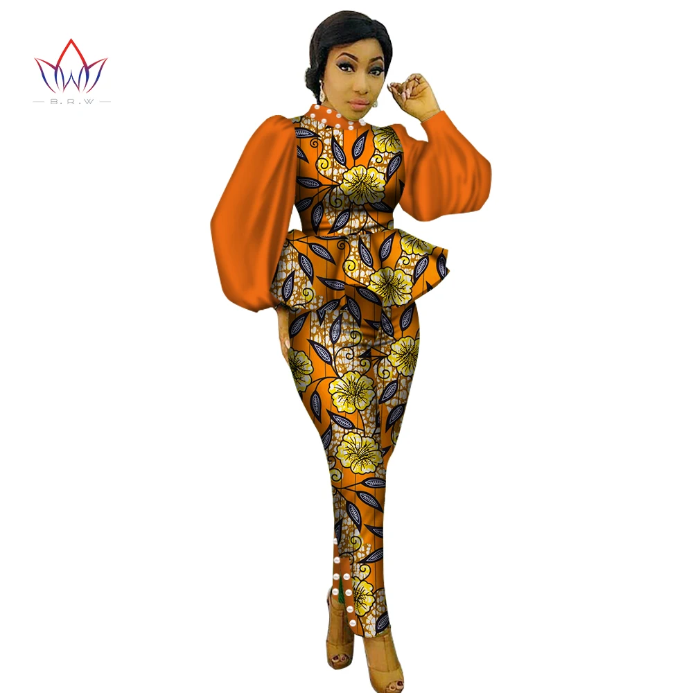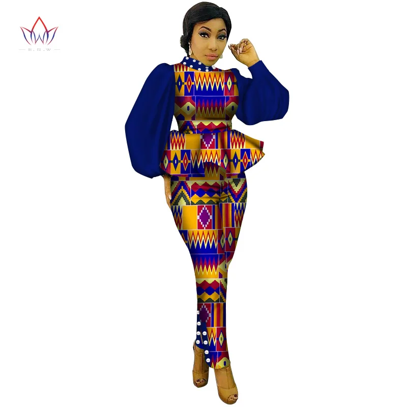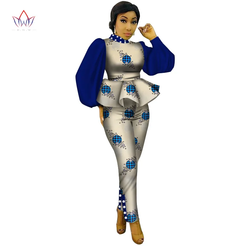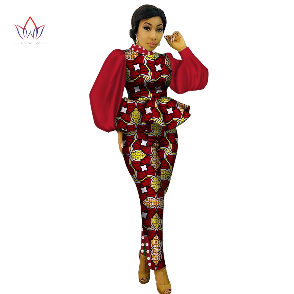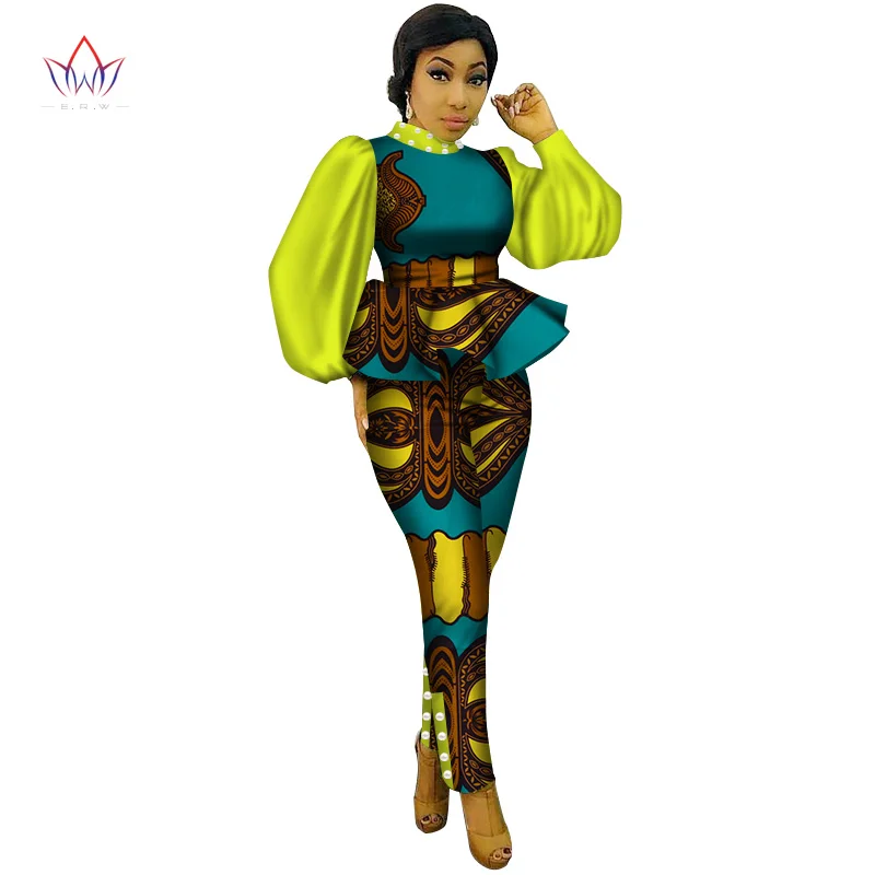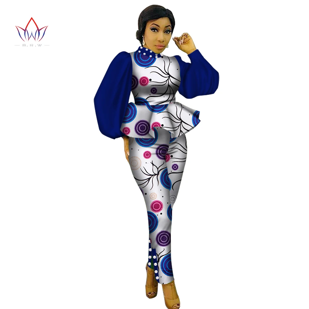 Новый стиль, комплект из 2 предметов, женский укороченный топ с оборками и брюки, бандажные брюки, Брендовые брюки с Африканским принтом, модель 6xl WY3156