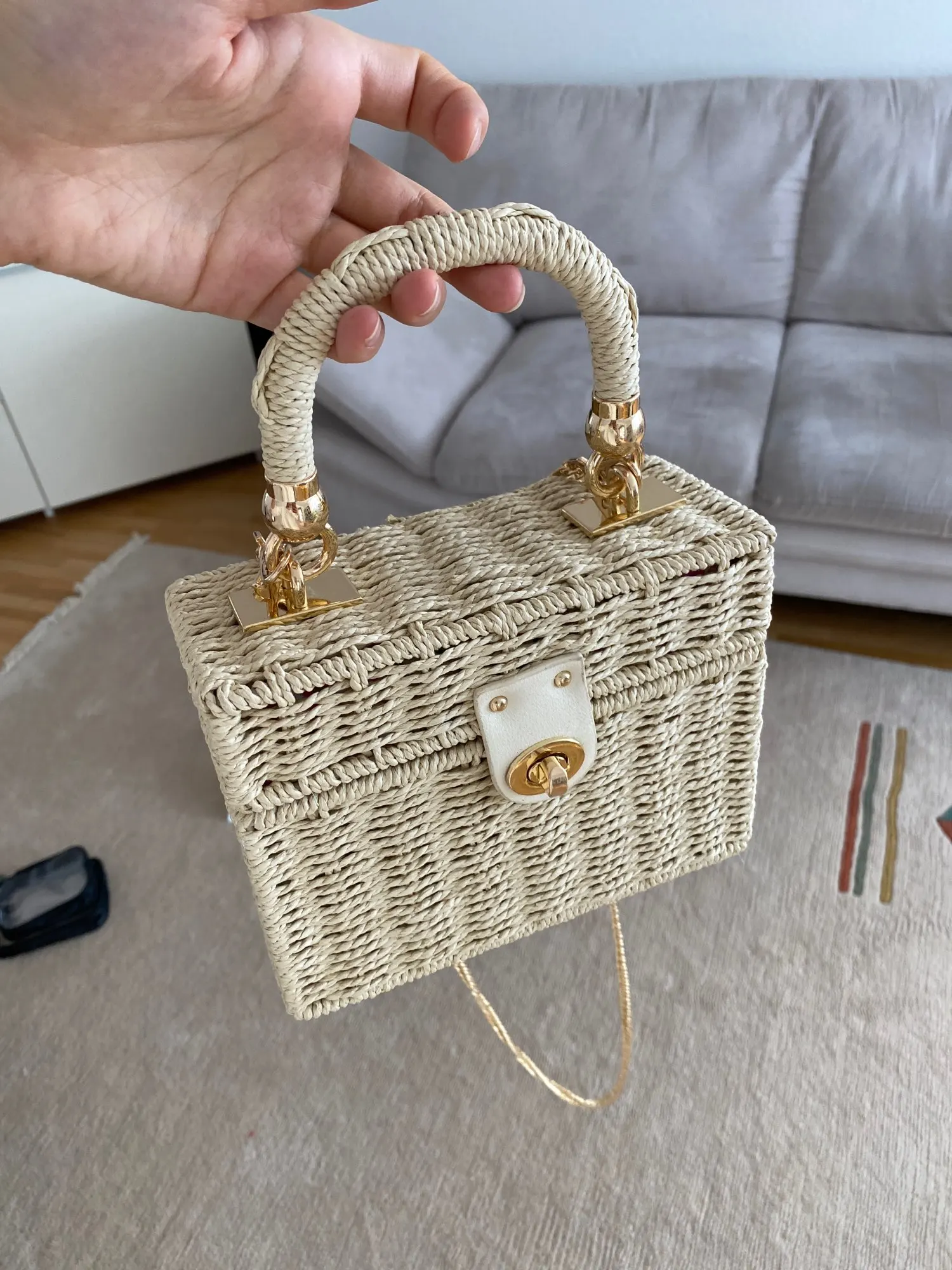 Сумка Соломенная женская, плетеная, квадратная, из ротанга