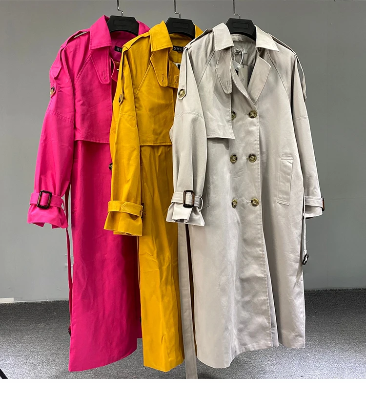 Женский двубортный плащ, винтажный свободный жакет из чистого хлопка, 2021