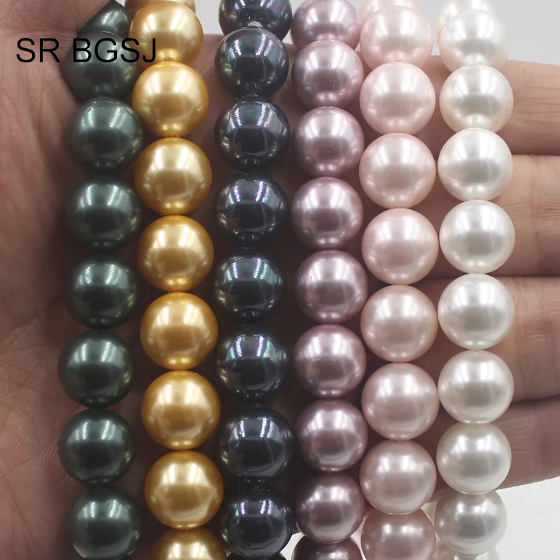 Бесплатная доставка 6 мм 8 мм 10 мм 12 мм Изготовление ювелирных изделий натуральная круглая Швабра ракушка жемчуг драгоценные камни свободные бусины нитка 15"