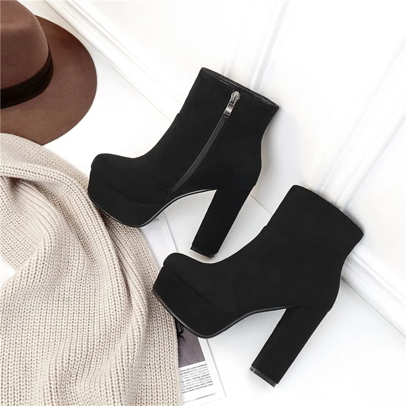 Женские ботильоны из искусственной замши MORAZORA, Черные ботильоны из искусственной замши на платформе, на молнии, Осень-зима 2021