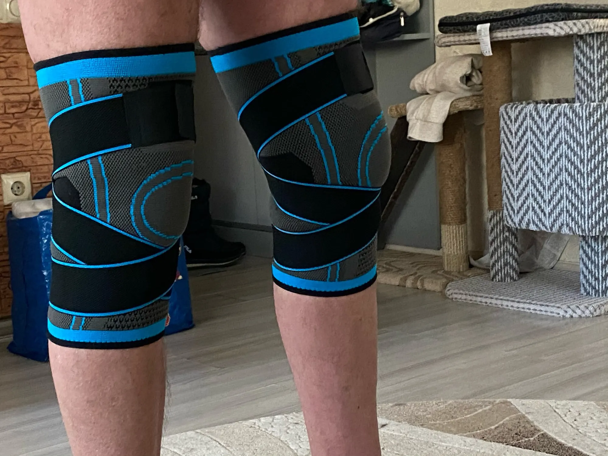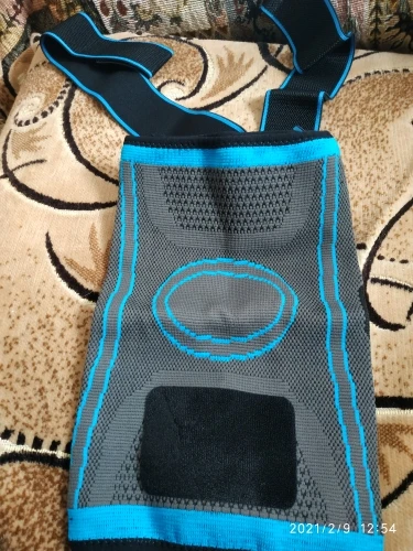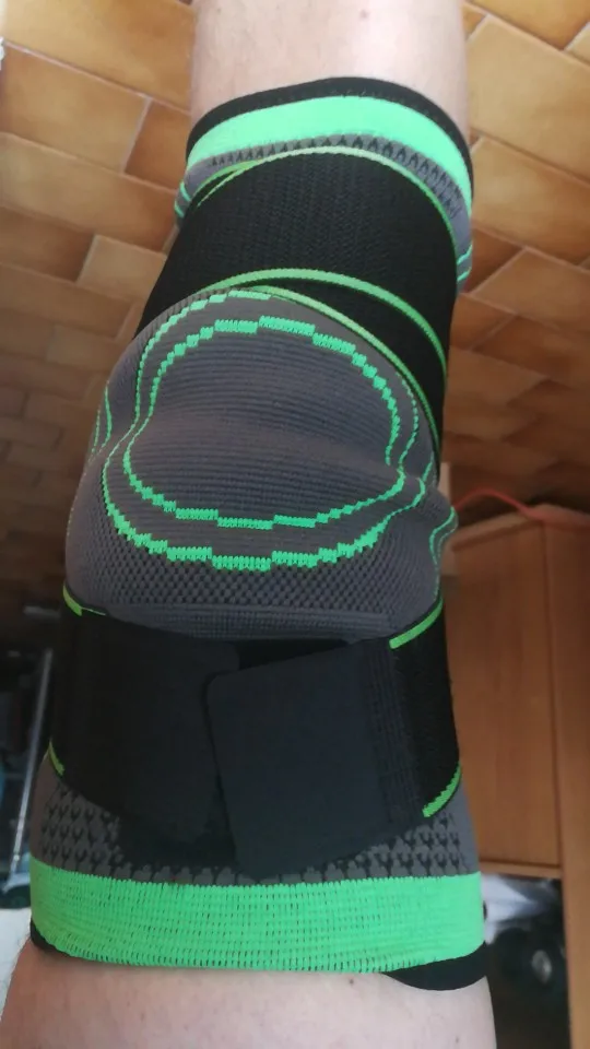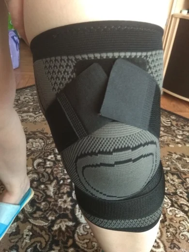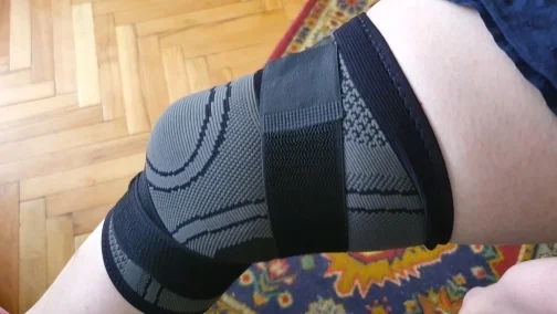 наколенник неплохой,фиксирует плотно.резинки для меня туговаты,если их фиксировать по-середине,то перетягивает.приклеила дальше,на ткань самого наколенника,при открепление остаются зацепки((поэтому,надеваю не снимая резинок
