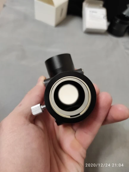 Супер хорошая и доступная диэлектрическая диагональ. Зеркало полностью соответствует размеру шасси, идеально подходит и имеет много света. Боковые пластины не потемнены внутри, но, похоже, это не создает проблем. С моим старым рефрактором jap 80/1200 эта Диагональ делает заметную разницу, даже если сравнить с довольно милым призматическим