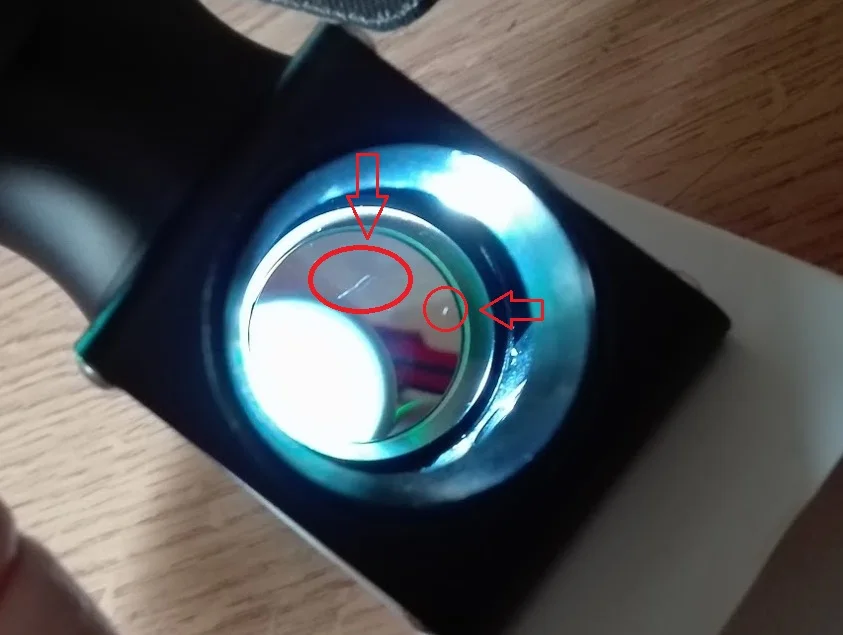 С виду качество хорошее, но на самом зеркале к сожалению есть несколько царапин. Это не прилипшие ворсинки или мусор, а именно царапины. Очень надеюсь, что они не повлияют на качество картинки. Я понимаю, что цена не такая уж огромная, но и не копейки. За такие деньги ожидал более лучшего качества. There are some scratches on the mirror surface.