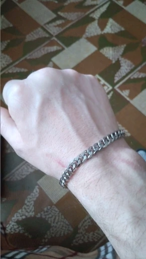 браслет тяжёленький с первого взгляда похожа на сталь.толщина и длина точные. о качестве товара напишу позже после эксплуатации в разных условиях. продавцу отдельное спасибо за оперативную работупака могу порекомендовать и товар и продавца.на руке смотриться солидно.
