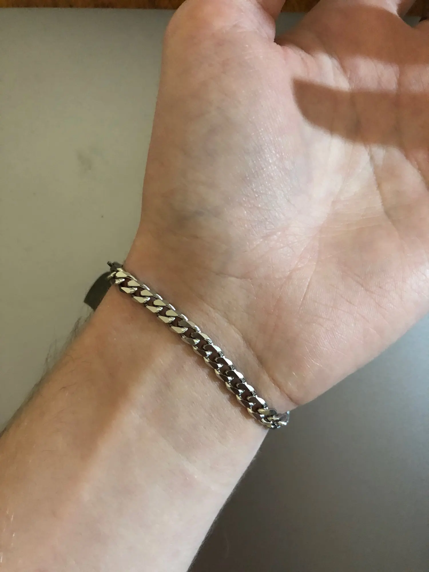 Покупаю второй раз. Первый цепок носил на руке 4 месяца. Не потемнел абсолютно! Теперь взял ещё 3 штуки. Одену на шею. Всем рекомендую сделать так же.