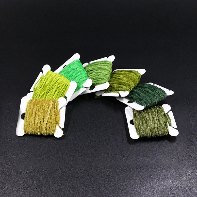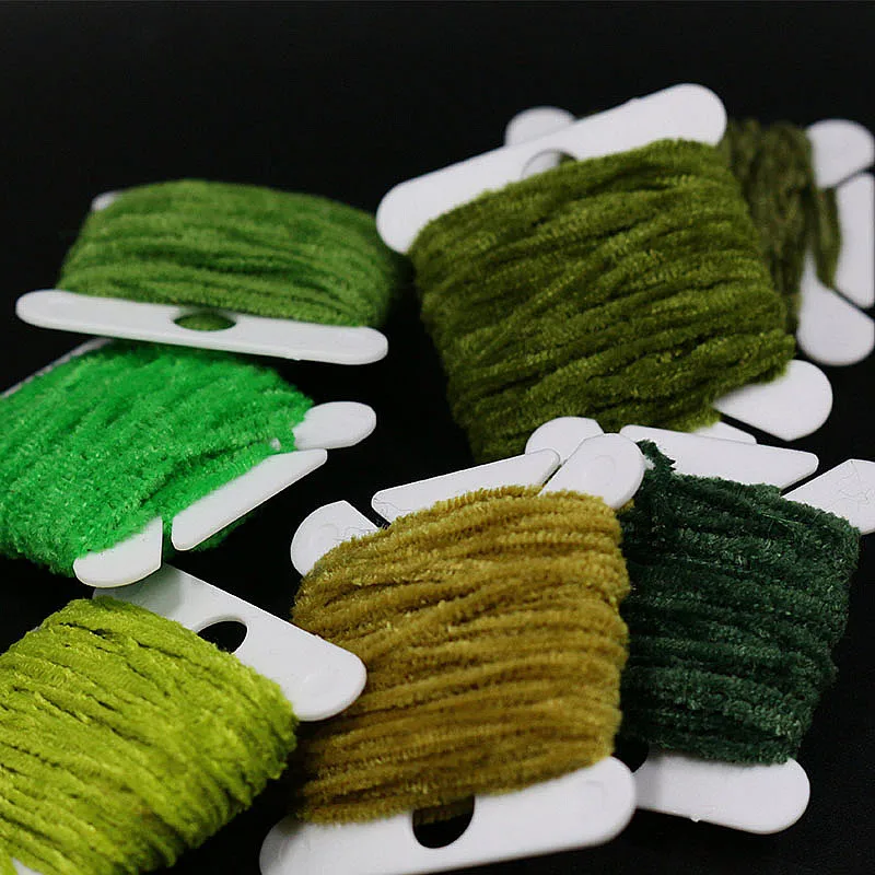 Пряжа для завязывания мушек, 7 карточек, микро шенилл, 7 зеленоватых цветов, вискозный шенилл, материалы для завязывания мушек, червей, пиявок, Стример Летать, пряжа для завязывания