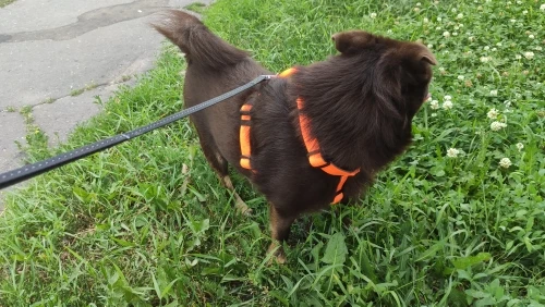 Взяли анатомическую шлею щену самоеда, на период взросления и подростковый возраст. Сейчас немного великоват данный размер, но выбраться из шлейки тоже не получится, сидит надёжно. Движения не сковывает, нигде не натирает. Щенку комфортно. Доставка очень быстрая, спасибо!
