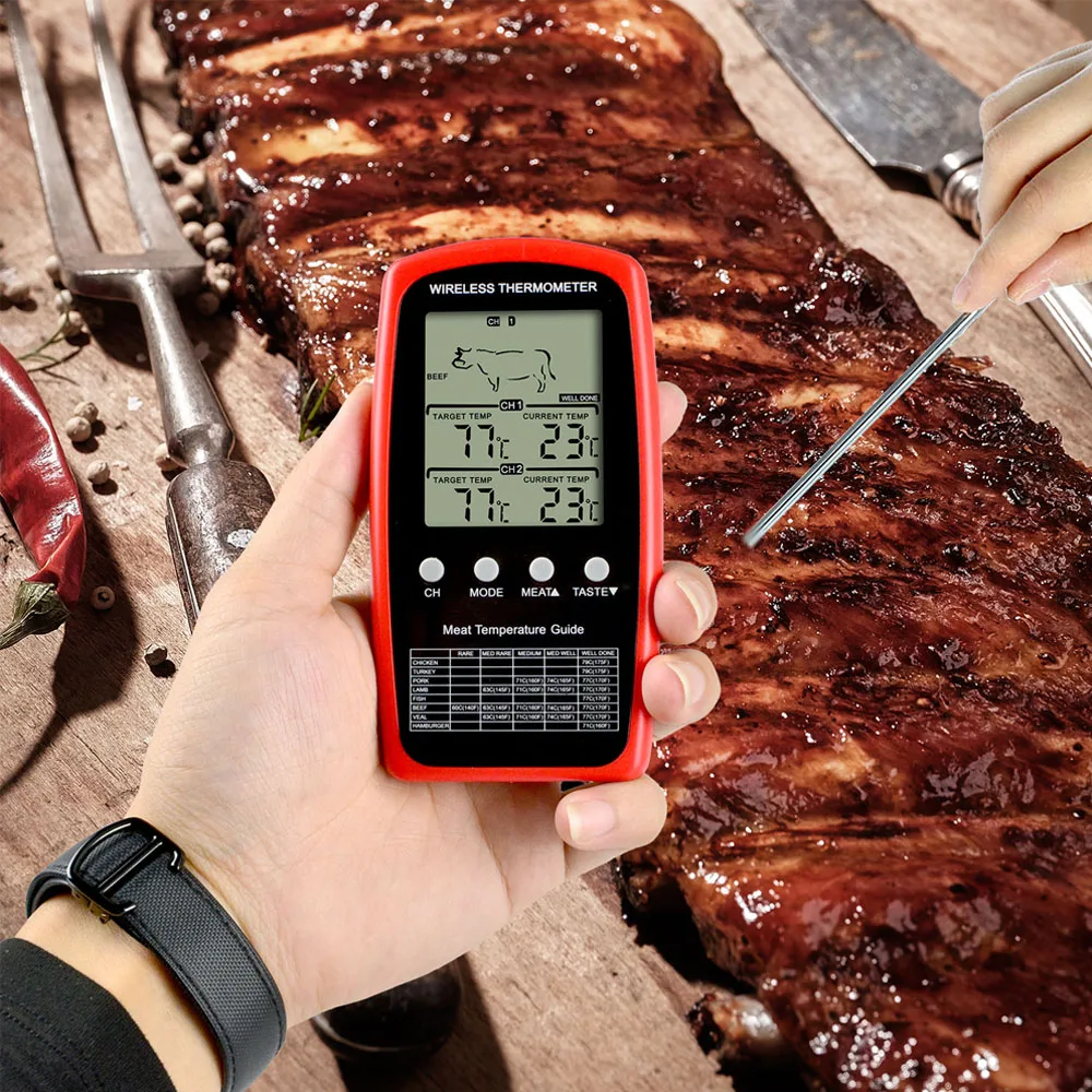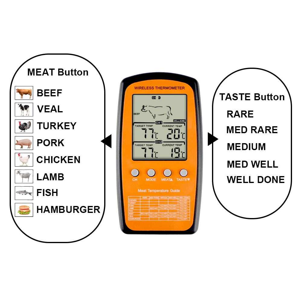 Дошло быстро, товар хороший. Только второй датчик температуры иногда выдаёт ошибку "ННН", потом через какое то время снова нормально показывает. Мне кажется все таки по этому датчкику температуры мясо немного не дожаривается, если нужна полная прожарка лучше подержать ещё пару градусов больше!