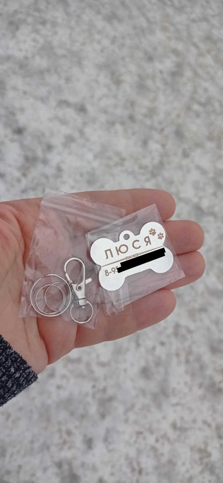 Надо написать в заказе кличку и номер и придёт уже готовый.заказ приходит быстро.