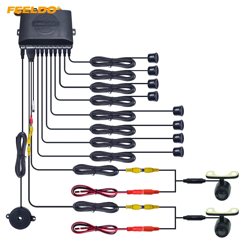 Автомобильный датчик парковки FEELDO, парковочная радарная система с 8 датчиками, 2 мини-CCD-камеры, двойная визуальная система заднего вида
