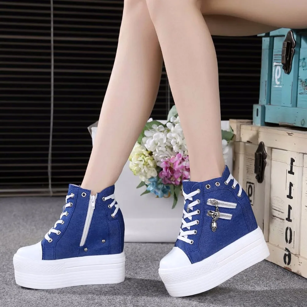 Женские кроссовки на танкетке, Прогулочные кроссовки на плоской подошве, дышащие, на молнии, повседневная обувь для осени, 2022