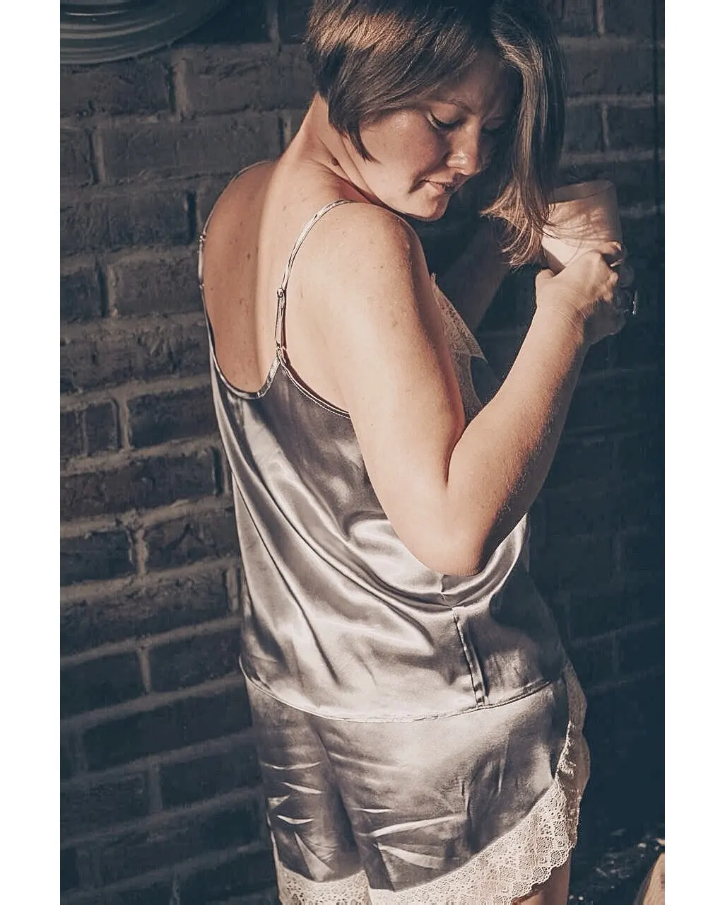Женская пижама VLENATLNO, Сексуальный Атласный пижамный комплект, белая кружевная Пижама с V-образным вырезом, без рукавов, милый топ на бретельках и шорты