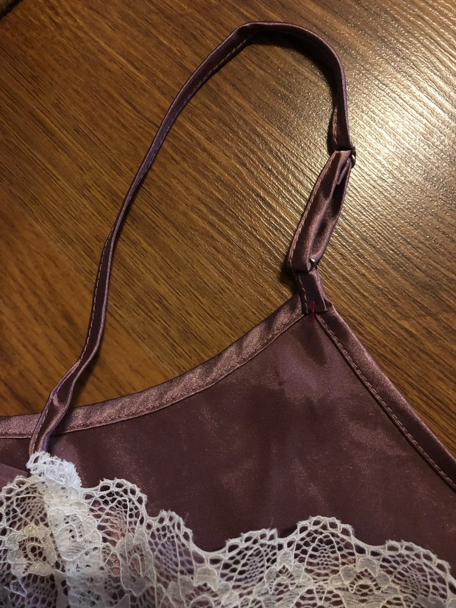 Цвет на фото отличается. Швы аккуратные, и пижама очень красивая. Немного прогадала с размером, взяла L на ОГ 90, ОТ 67, ОБ 91 надо было М, но в целом лямки регулируется. Резинка в поясе не тугая, не давит. К телу приятна