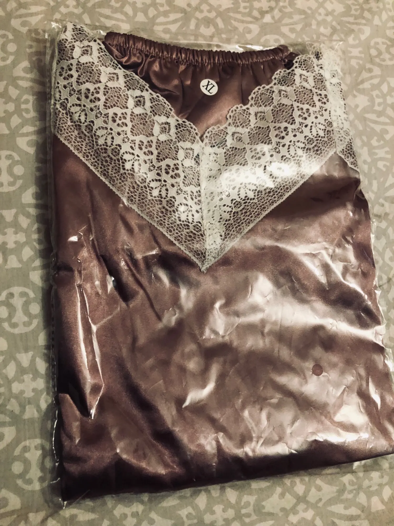 Качество очень хорошее, кружево и швы ровные. Доставка до Санкт-Петербурга составила 2 недели. На параметры 72-104 взяла размер XL, село идеально. Материал приятный к коже. За 400 рублей шикарная пижамка!