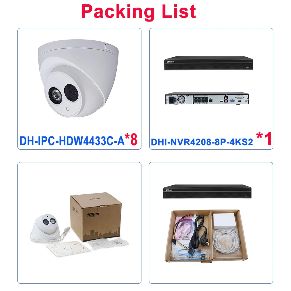 Система видеонаблюдения Dahua, 8POE, 4K, сетевой видеорегистратор, NVR4208-8P-4KS2 8 шт., 4 МП, IP-камера, система наблюдения