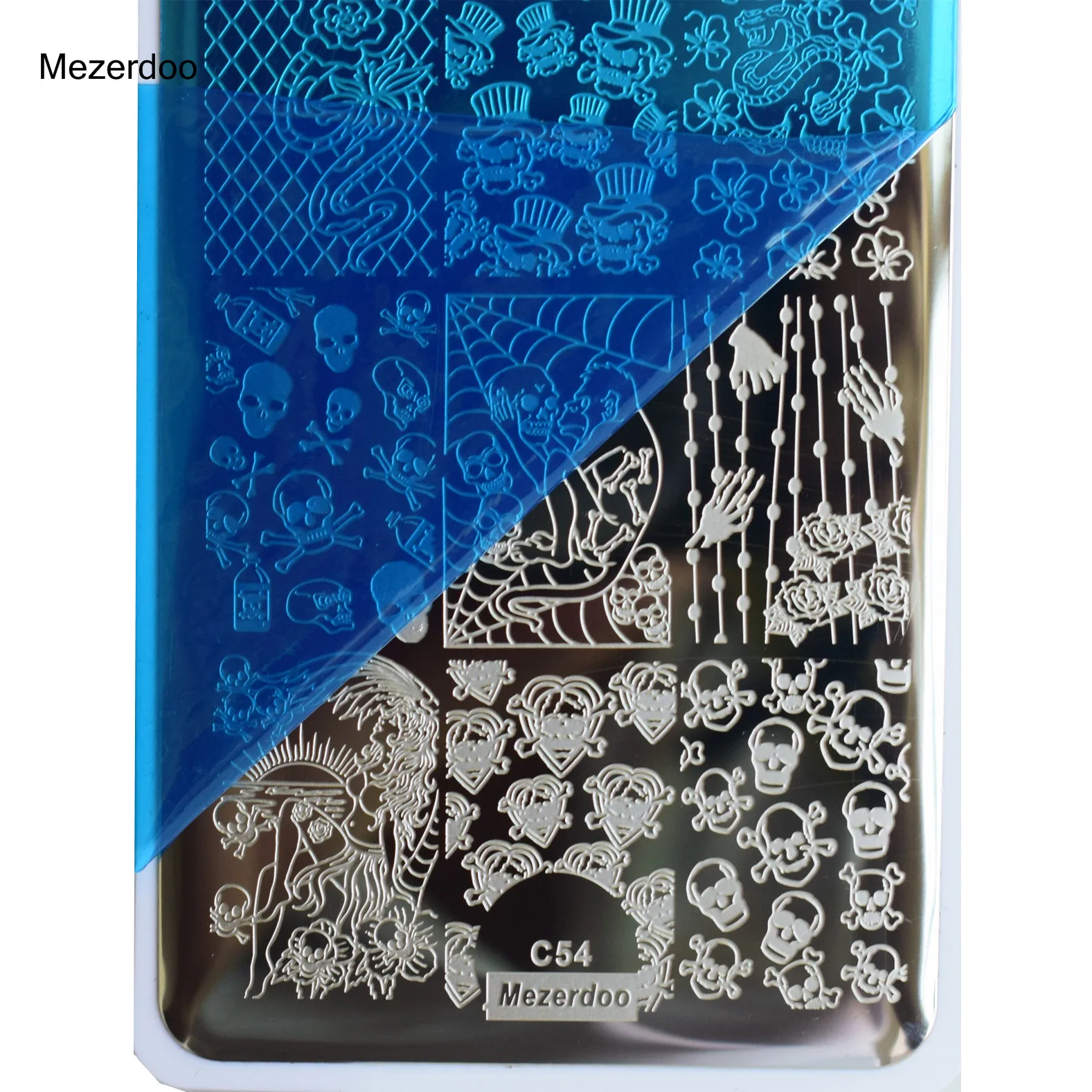 Штампы для ногтей пластинки для ногтей из нержавеющей стали Забавный цветок черепа Сделай Сам Скелет смерти костяной спрайдер веб-дизайн в полоску шаблоны изображений