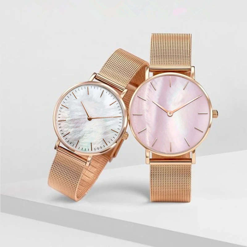 Женские наручные часы Mavis Hare, розовые и белые сетчатые часы с жемчужным циферблатом и сетчатым браслетом из нержавеющей стали в подарок, 1 шт.