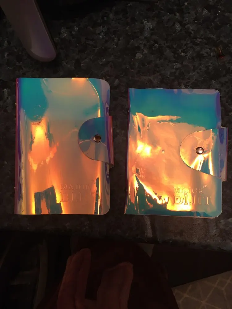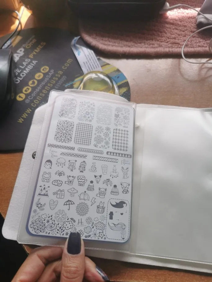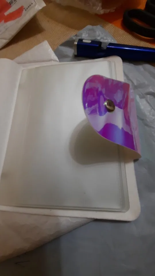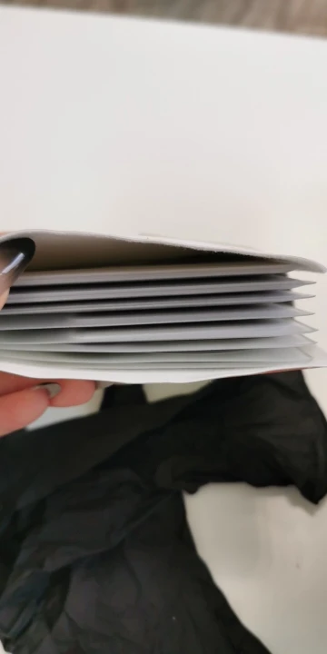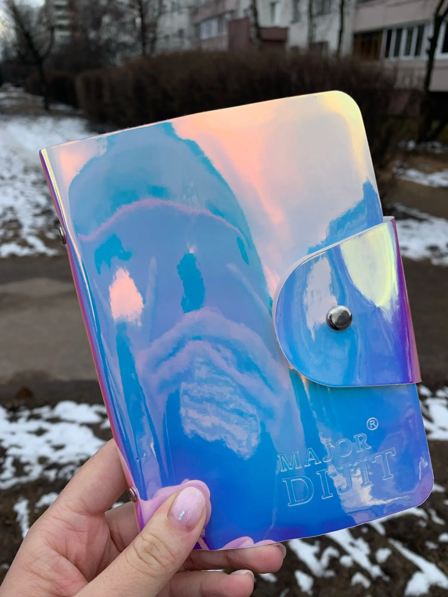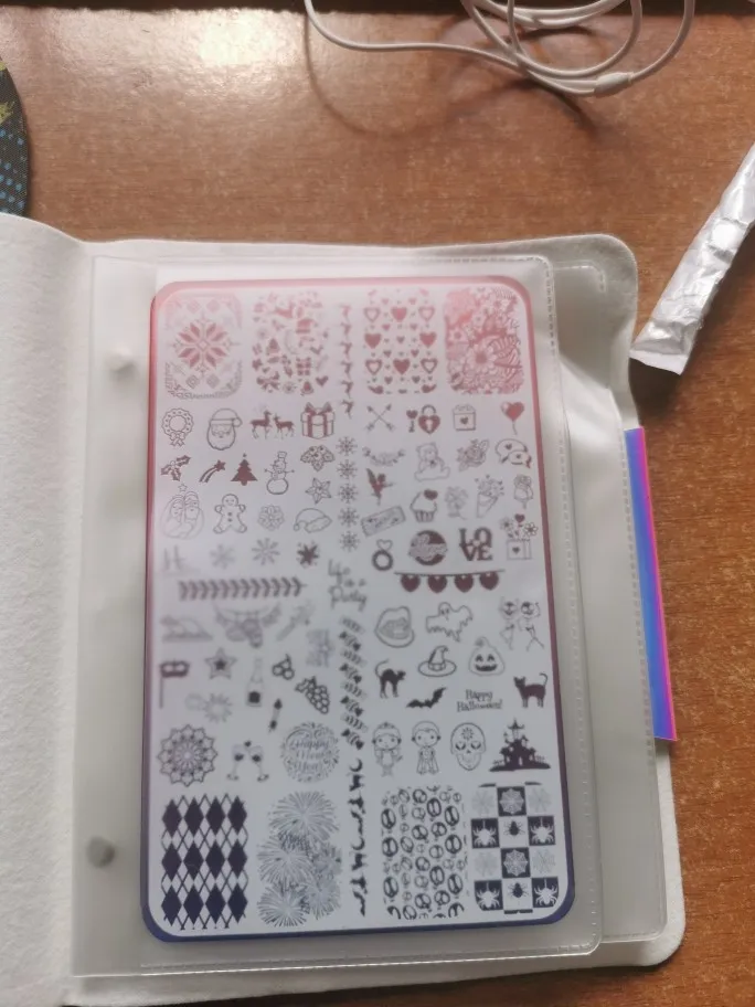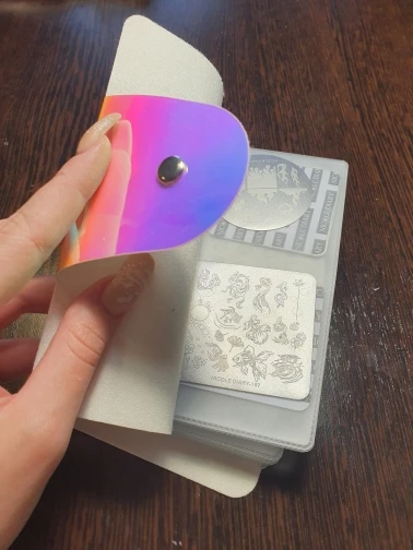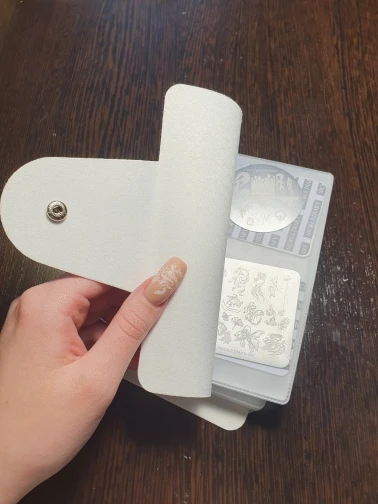 Чехол для пластин пришёл за 3 недели, хорошо помещаются и достаются как самые большие пластины, так и те, что поменьше. Из плюсов могу отметить 2 кнопки. А из минусов - матовый материал внутри, который не очень прозрачный в действительности и у клиентов может возникнуть желание достать пластину, чтобы выбрать рисунок.