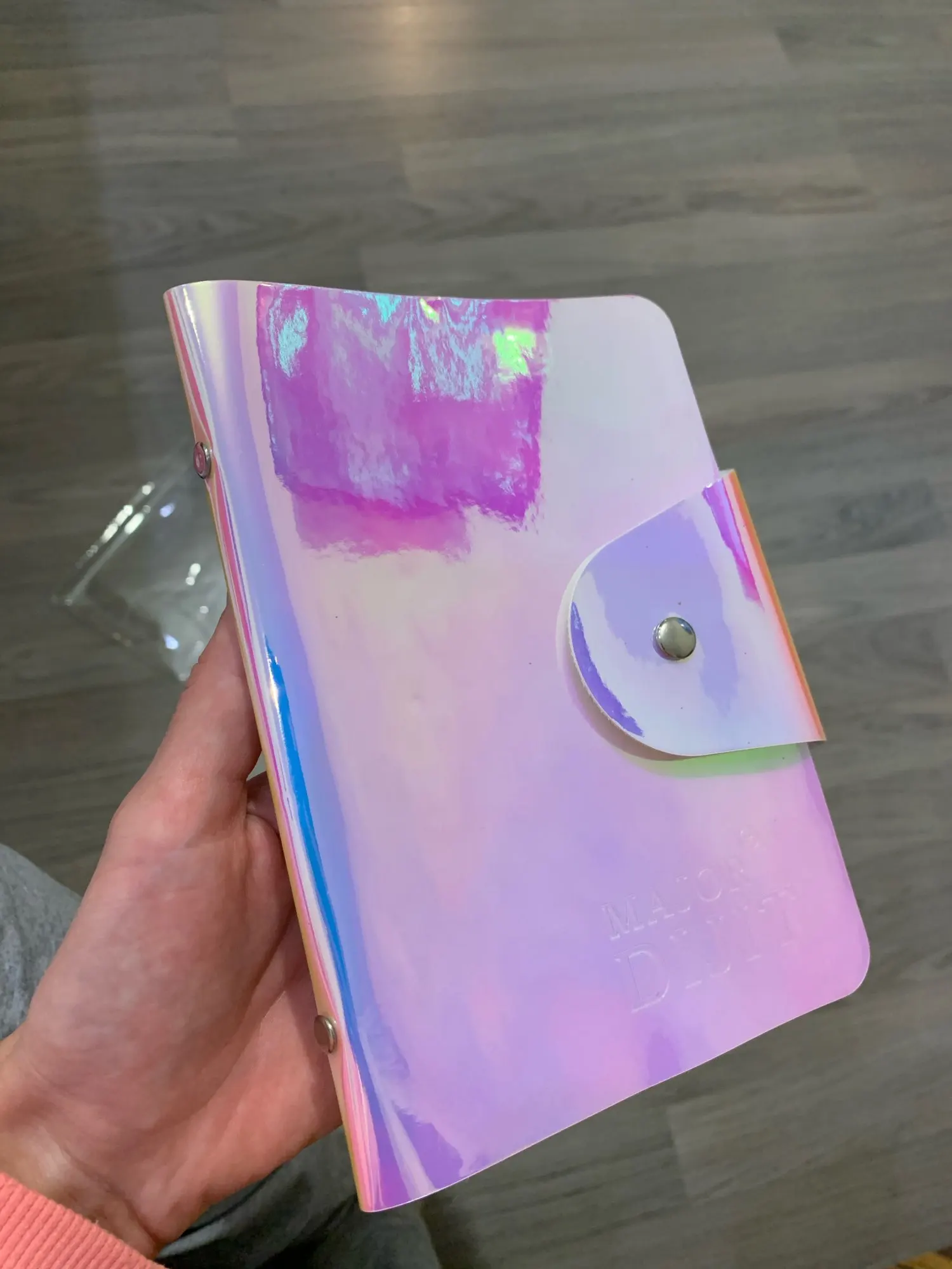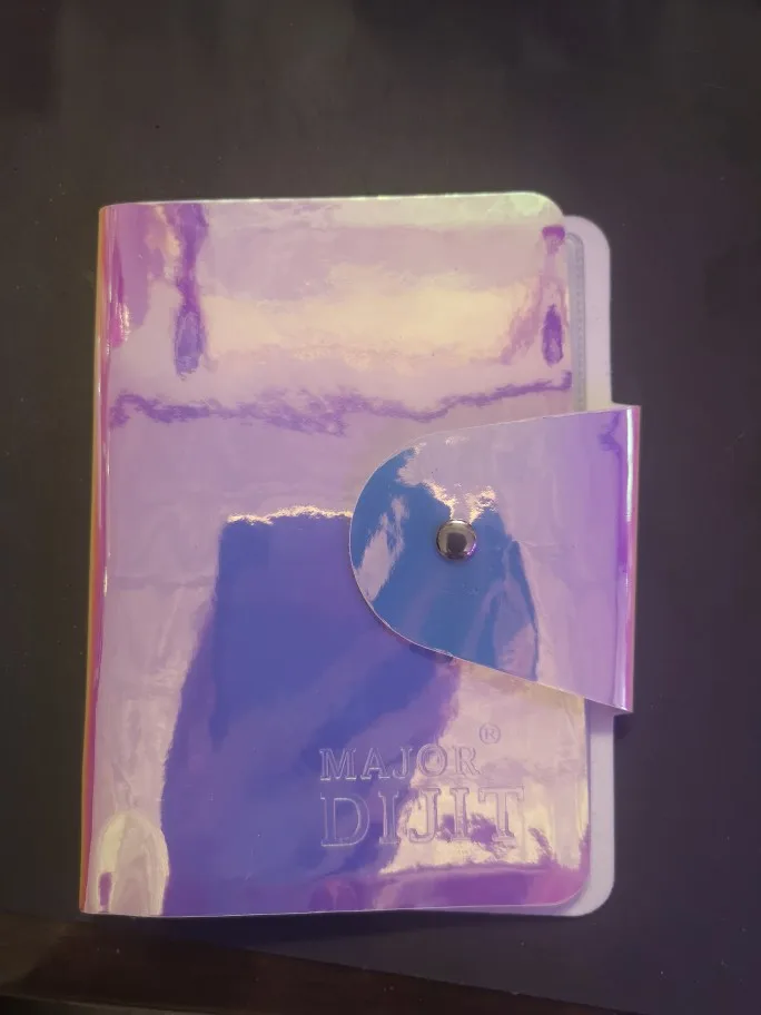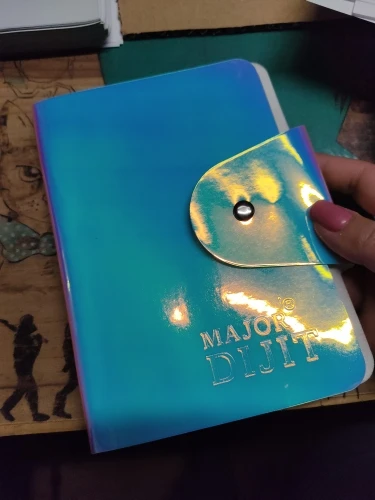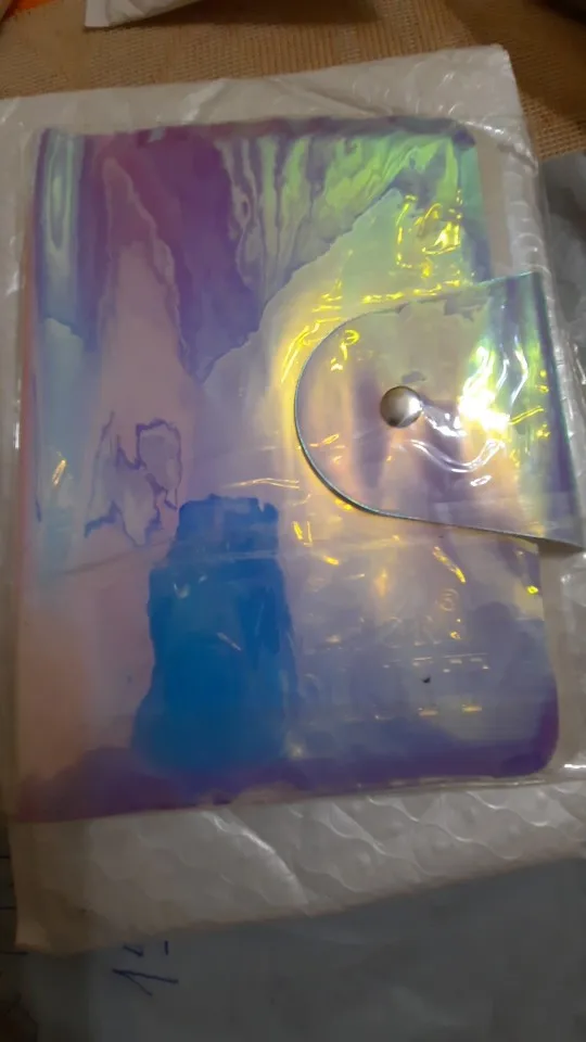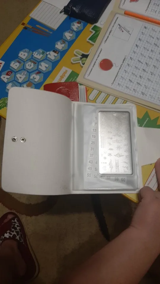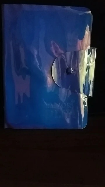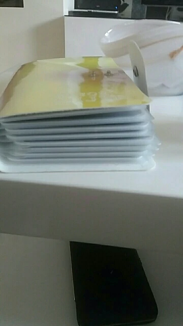 блокнот неплохой, кармашек для пластины сбоку, пластина на подложке лежит плотно, в файле не катается, что удобно 2 заклёпки, можно закрывать на любую ... т е если альбом заполнен под завязку, альбом все равно будет замыкаться. посылка шла почти месяц.