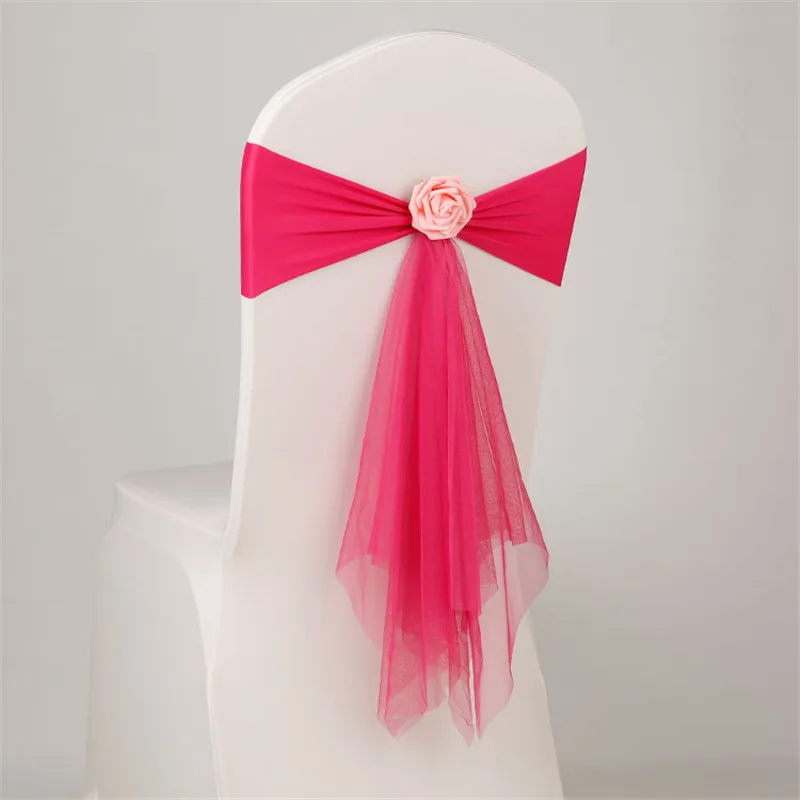 Украшение для стула из органзы с цветочным поясом из спандекса