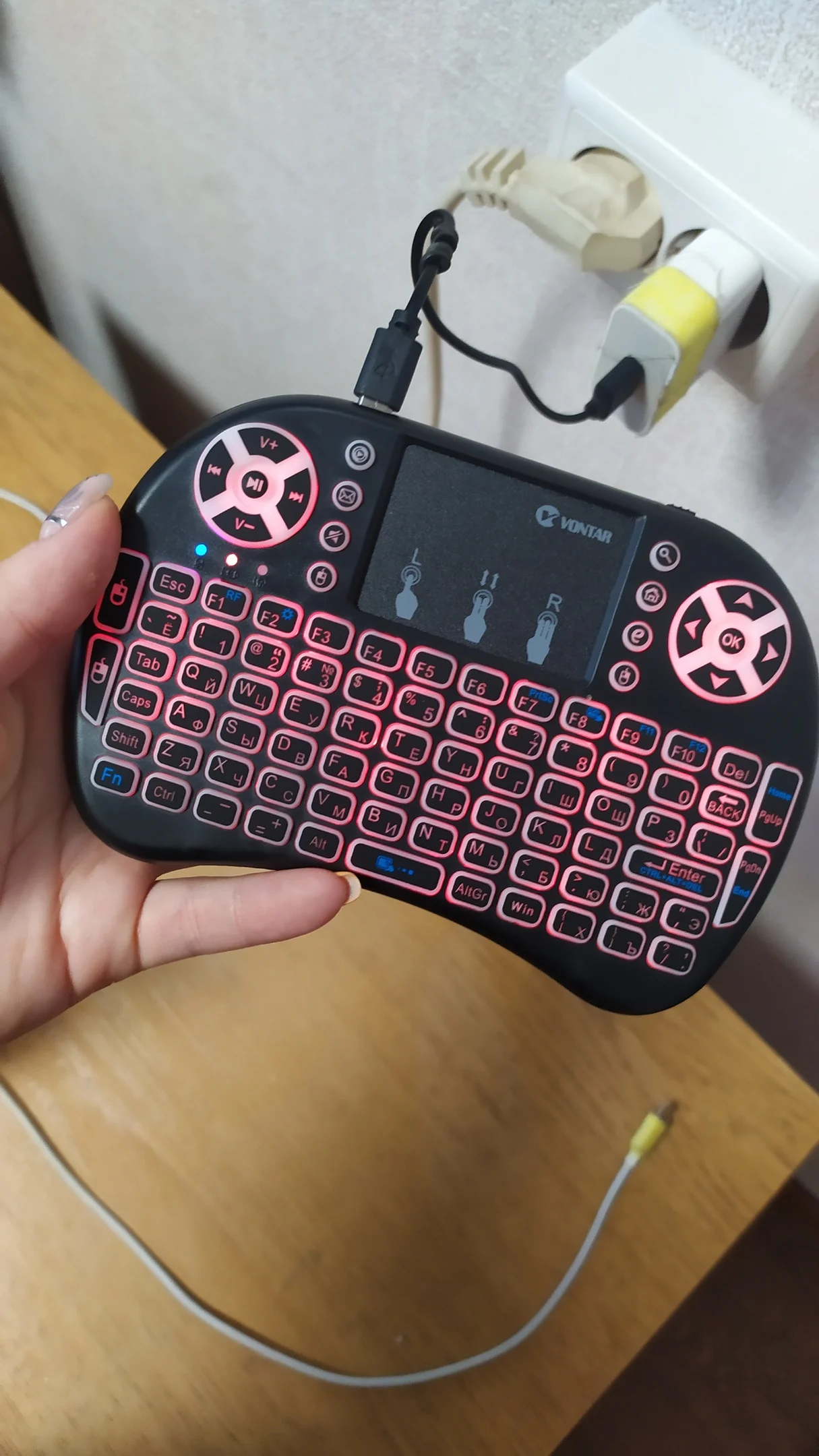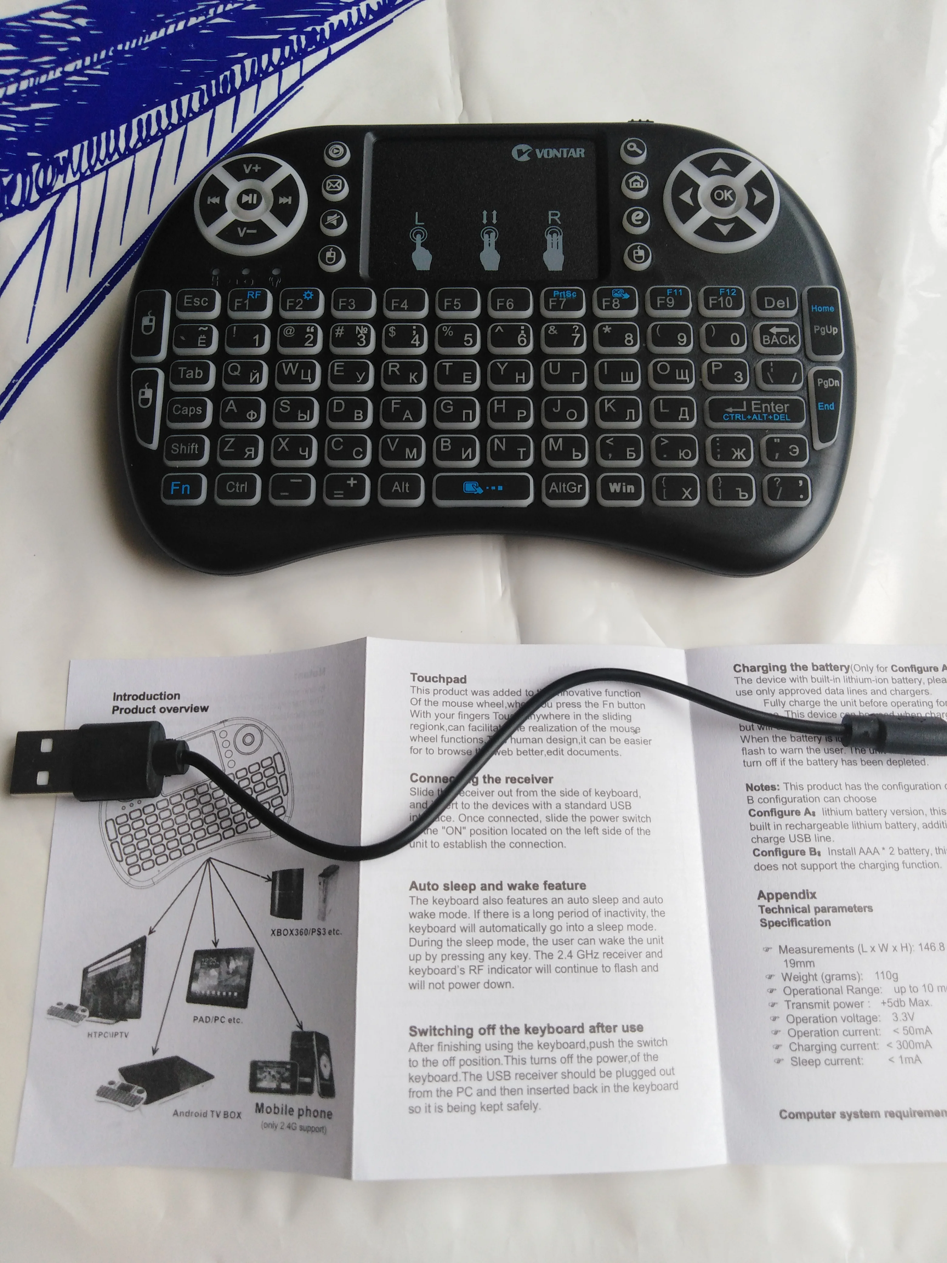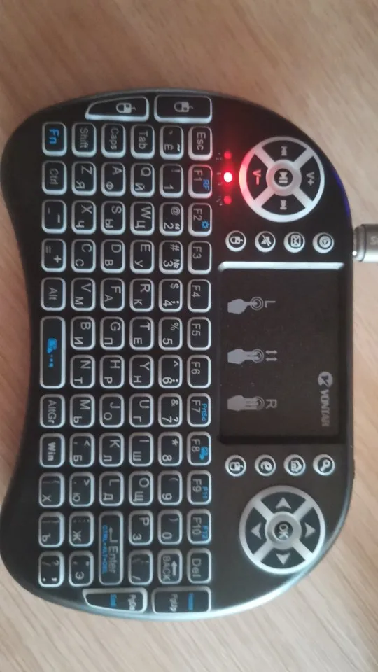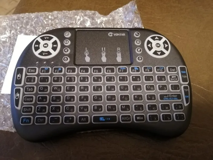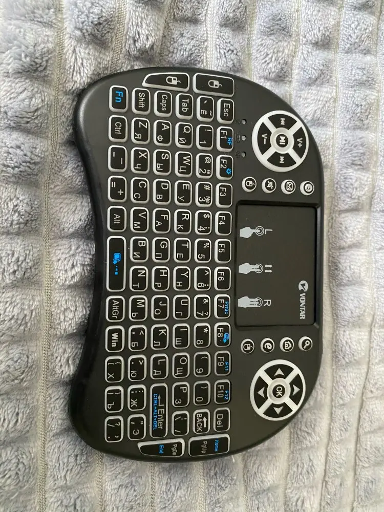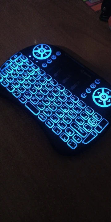Отличная клавиатура, небольшая, с подсветкой, на аккумуляторе, для телевизора самое то! Клавиши приятные на ощупь, держать удобно, текст набирается просто двумя пальцами как на телефоне. Есть еле заметный запах, но уверен выветрится. Товар отличный, рекомендую.