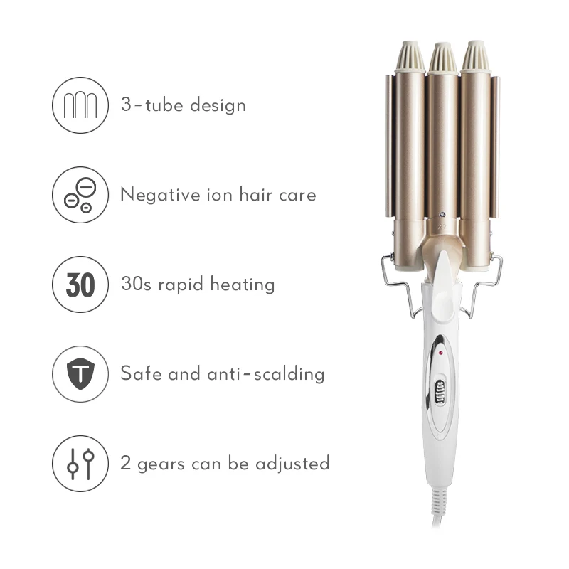 Щипцы Kemei для завивки волос, профессиональные инструменты для ухода за волосами, плойка, стайлер для создания Кудрей, 3 бочка, щипцы для волос 110-240 В 35D