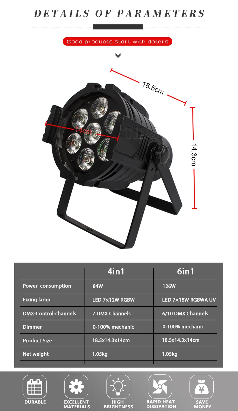 Светодиодный светильник, 7x18 Вт, из литого алюминия, RGBWA +, УФ, dmx, сценический светильник, для дома, развлекательная лампа