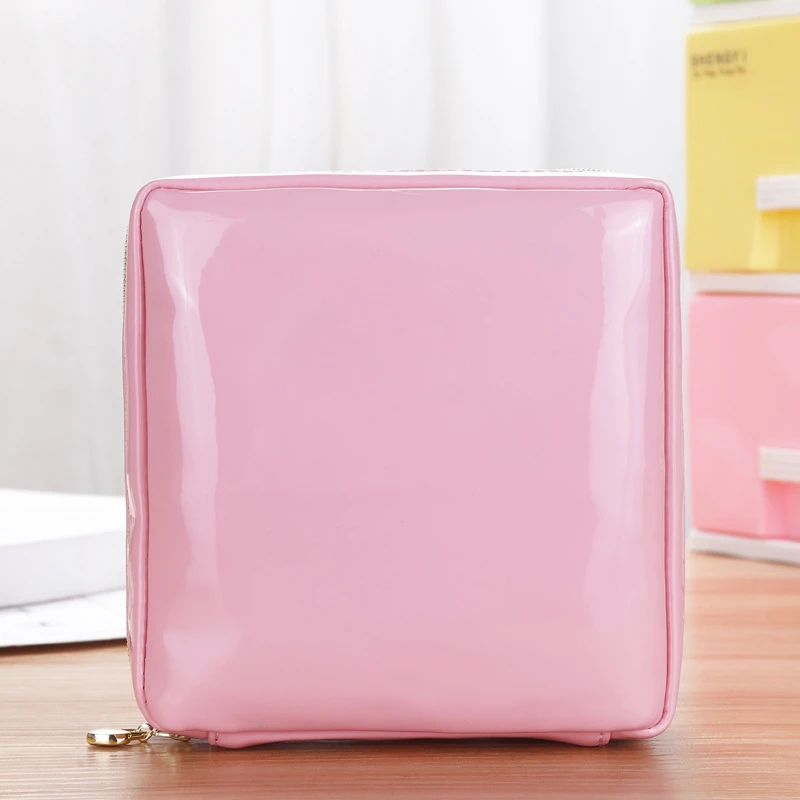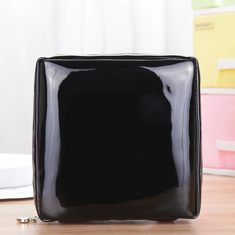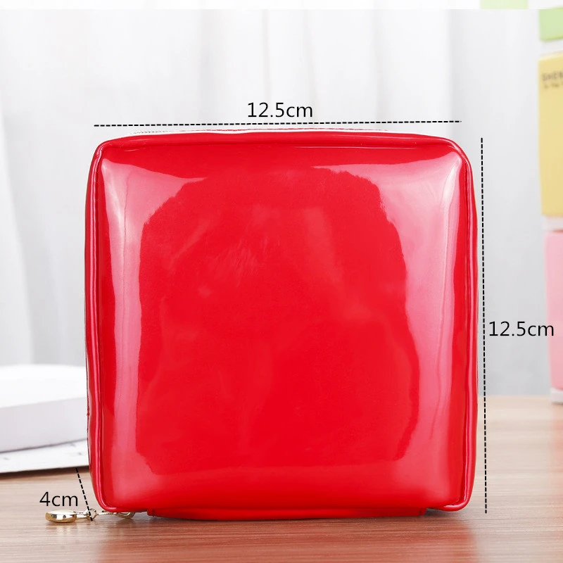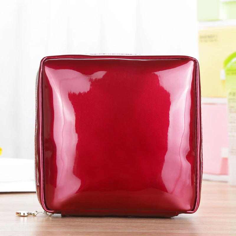 Женская квадратная косметичка PURDORED, 1 шт., на молнии, из лакированной кожи, косметический чехол для путешествий