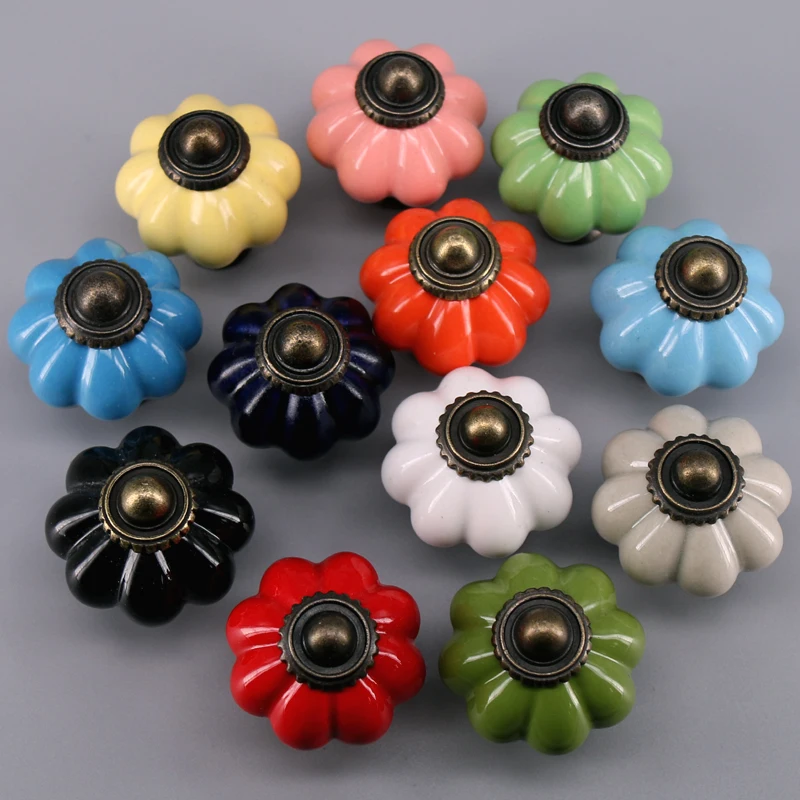 Керамические ручки в стиле рустика в виде тыквы для гардероба, детской, спальни, фарфоровые ручки для шкафа, ручки для комода, ювелирных изделий