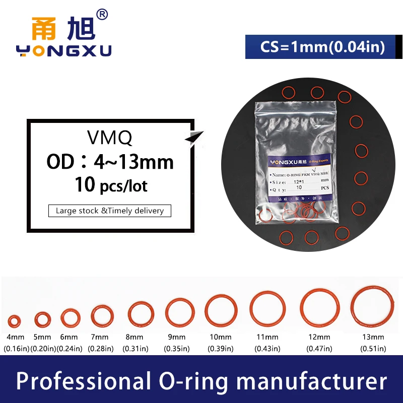 10 шт.лот красное Силиконовое кольцо VMQ уплотнительное кольцо cs1 мм толщина OD45678910111213*1 мм уплотнительное кольцо резиновые прокладки кольца шайба
