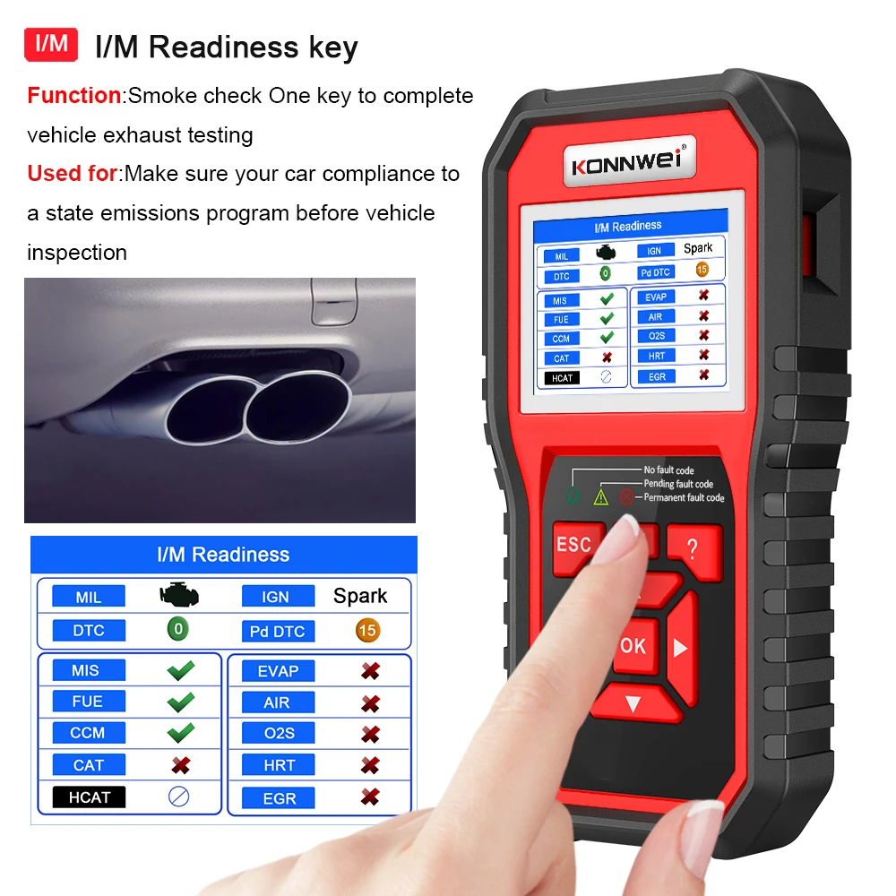 Функция кнопки помощи: обеспечивает информацию о помощи и функцию выключателя кода.I/M ключевая функция готовности: проверка дыма один ключ для завершения тестирования выхлопных газов автомобиля. Используется для: Убедитесь, что ваш автомобиль соответствует программе государственных выбросов до осмотра транспортного средства.