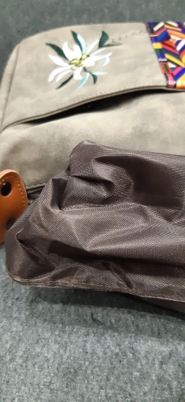Все точно по описанию, места много, материал приближенный к замше. В подарок положили резинку для волос. На передней стороне где нарисованы цветы два кармана на магните, ладонь полностью помещается. Дно из твердого материала, пояс приятный на ощупь, никаких ниток нет, замок крепкий. Дошла за 16 дней, очень быстро для почты