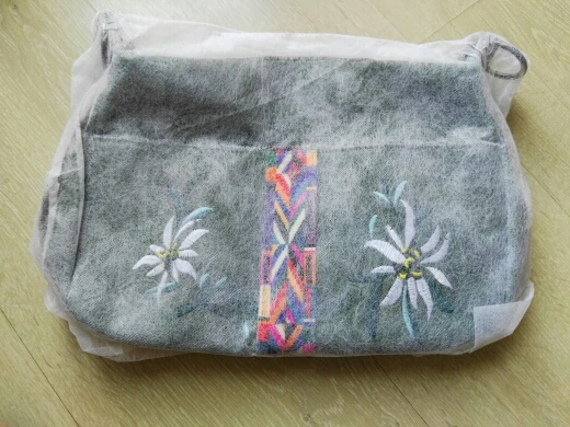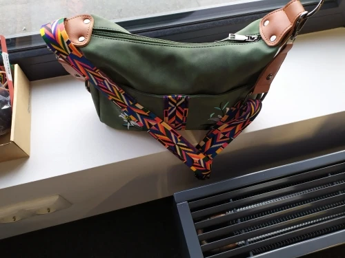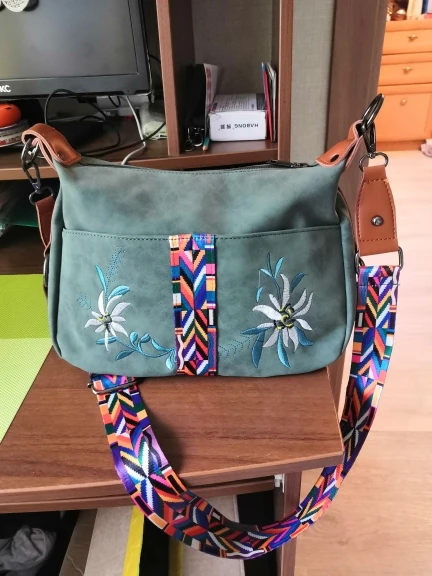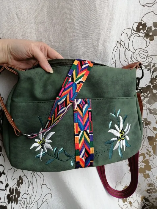Bardzo szybka dostawa do Polski, produkt zgodny z opisem, dobrze wykonany, nie śmierdzi. W środku torebka posiada podszewkę i 1 wewnętrzną kieszeń na ekspres, na zewnątrz są jeszcze 3 kieszenie, jedna na ekspres, dwie na magnesy. Haft bardzo ładnie i porządnie wykonany, intensywne, żywe kolory. Polecam produkt i sprzedawcę!