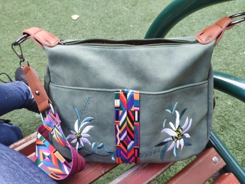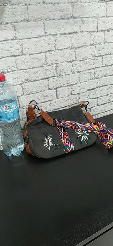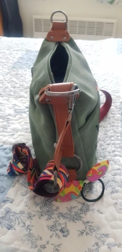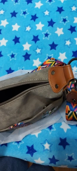 Хорошая сумка, немного меньше, чем я себе представлял, но ткань выглядит лучше, чем я ожидала. Разноцветные акценты/ремешок отлично сочетаются с сумкой. Мне очень нравится!