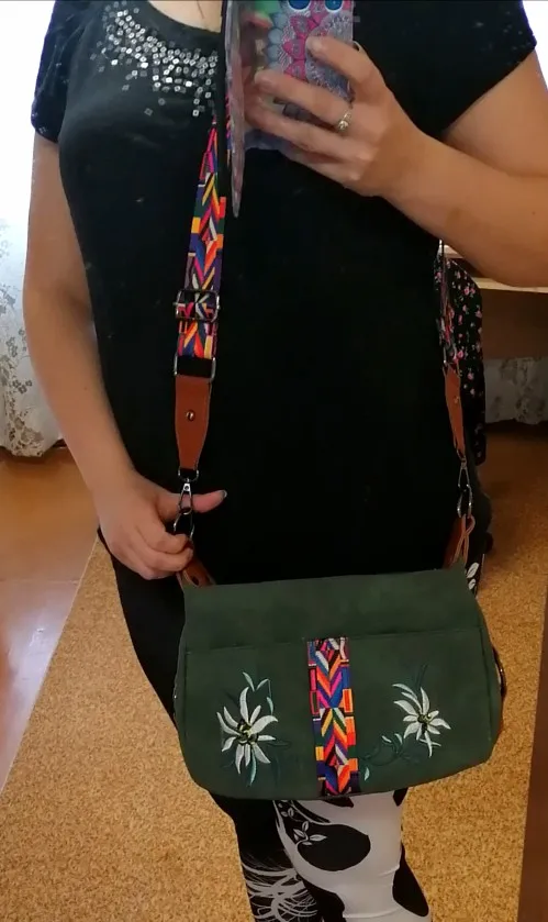 Продавец отправил посылку только через 4 дня. Заказывала 11.11. Но пришла быстро, через 2 недели. Сумка объёмная. Хотя, для кого как. Я думала, это будет миниатюрная сумочка, а она вполне большая. Кому-то даже маловата. Внутрь войдет больше, чем кошелёк и ключи. Качество очень хорошее, подклад внутри прочный, всё прострочено и пришито крепко. Молнии, клепы, ремень, вышивка и т.д.- всё отлично. Внешне- имитация кожи и замши. Единственное- запах! Воняет сильно. Проветрить изделие надо капитально. К покупке рекомендую.