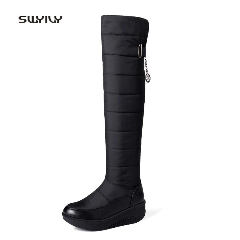 Женские ботинки на танкетке SWYIVY, с вельветовой подкладкой, теплые, Нескользящие, до колена, 2018
