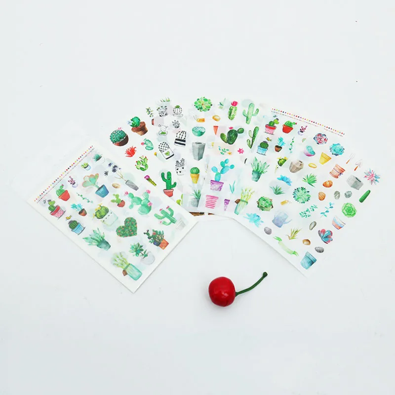 Клейкие наклейки Y11, 6 листов, Ярко-Зеленый Кактус, любовь, декоративный альбом, дневник, этикетка, ручной аккаунт, Декор, Канцтовары